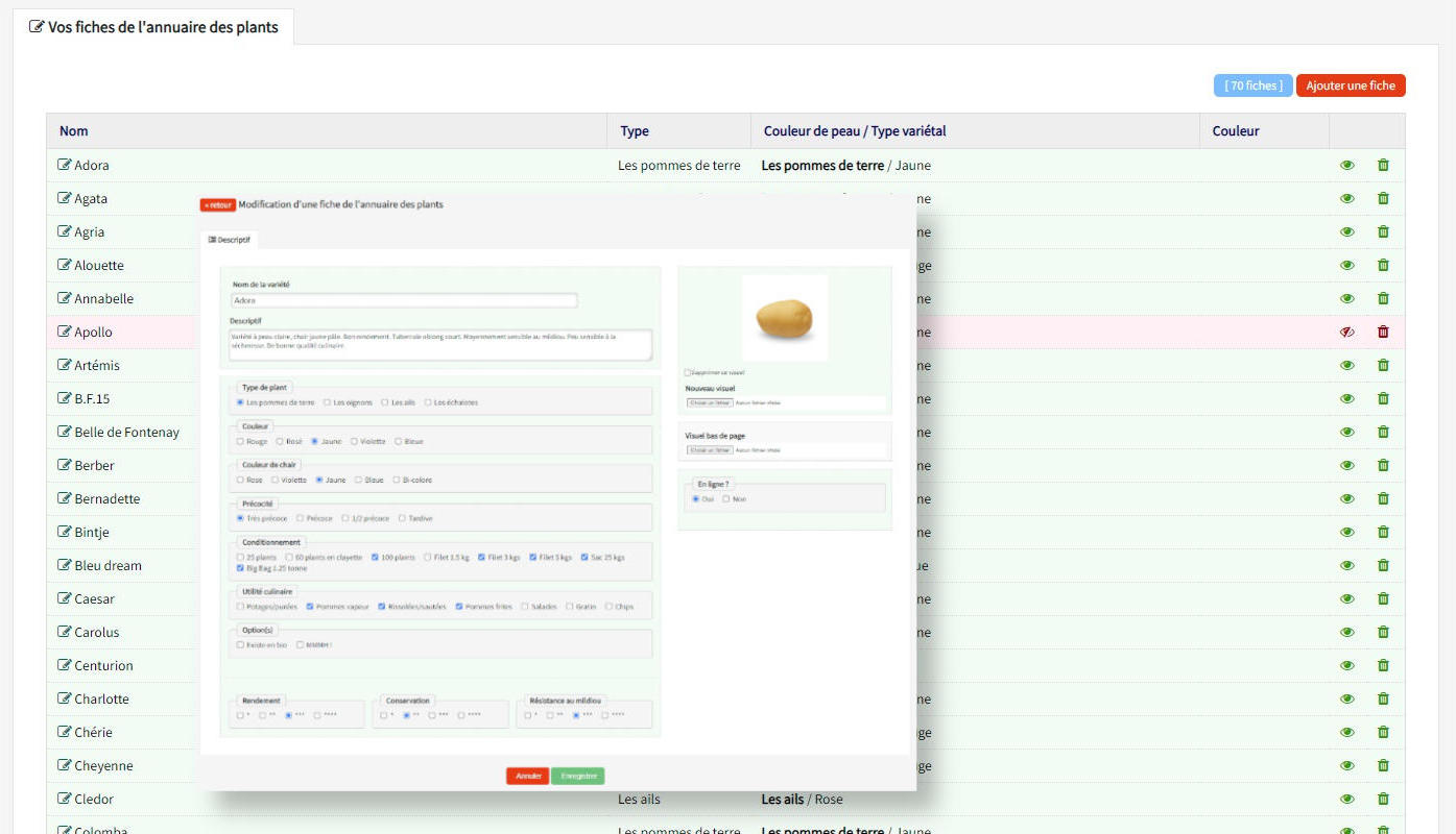 Pour optimiser leur fonctionnement, Eric Debaere a souhaité intégrer au site internet un catalogue spécifique, un outil visuel de présentation de leur large variété de plants. Les acheteurs viennent surtout d'Europe et ne parle pas la langue française. Les décrire c'est bien, mais visuellement c'est encore mieux.